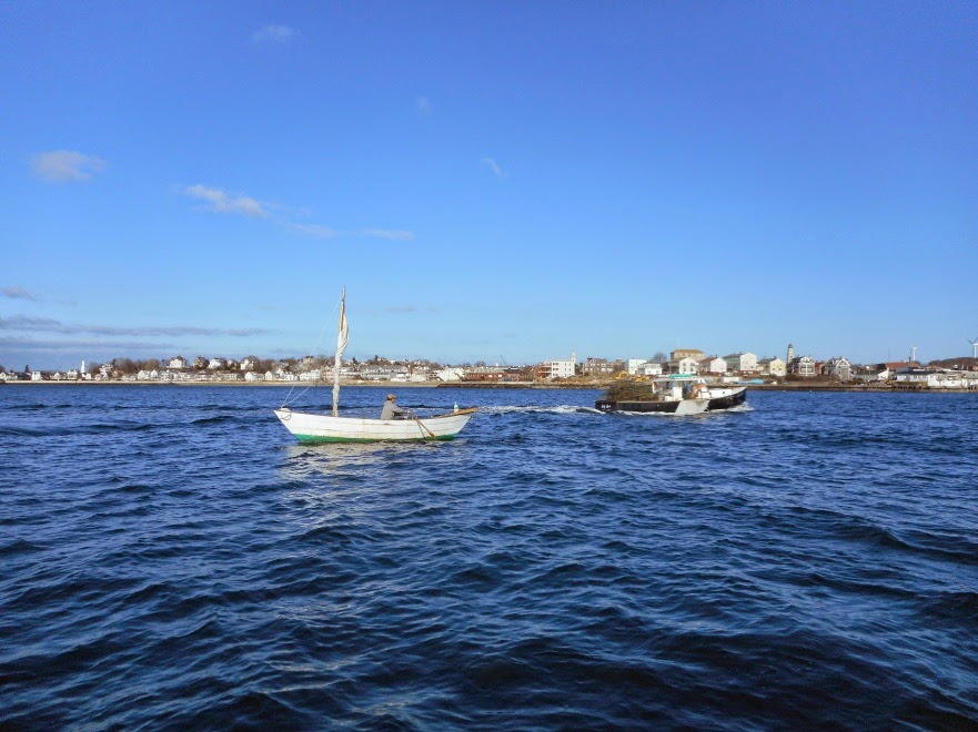 We enjoy an afternoon ripping back and forth from Niles Beach to Stage Fort Park, passing just south of the big rock off Ten Pound Island on every tack.