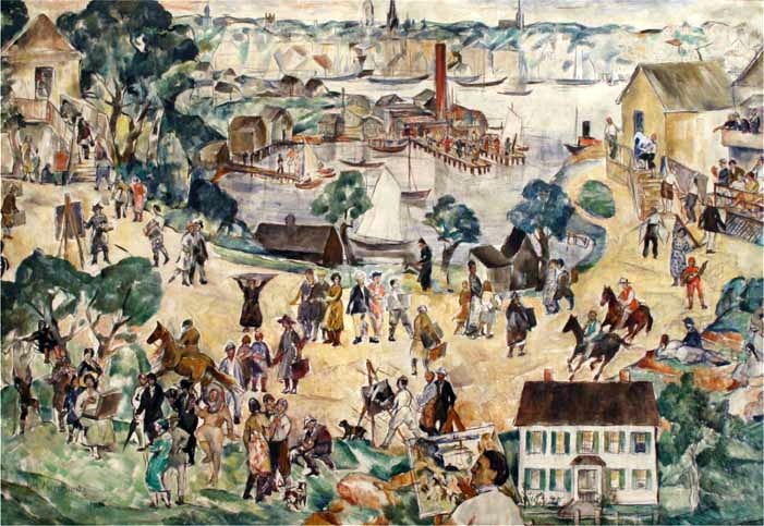 Graduating from high school, Bob studied art in Boston before initiating a career in military intelligence that took him over most of the world. He mastered several languages, including German and Arabic, returning to Gloucester after his retirement to resume work as an artist in a Zen-like studio just off Main Street, overlooking the harbor. His magic-realist paintings of the city and the waterfront seemed to incorporate the imagery of the cultures he’d come to know intimately.